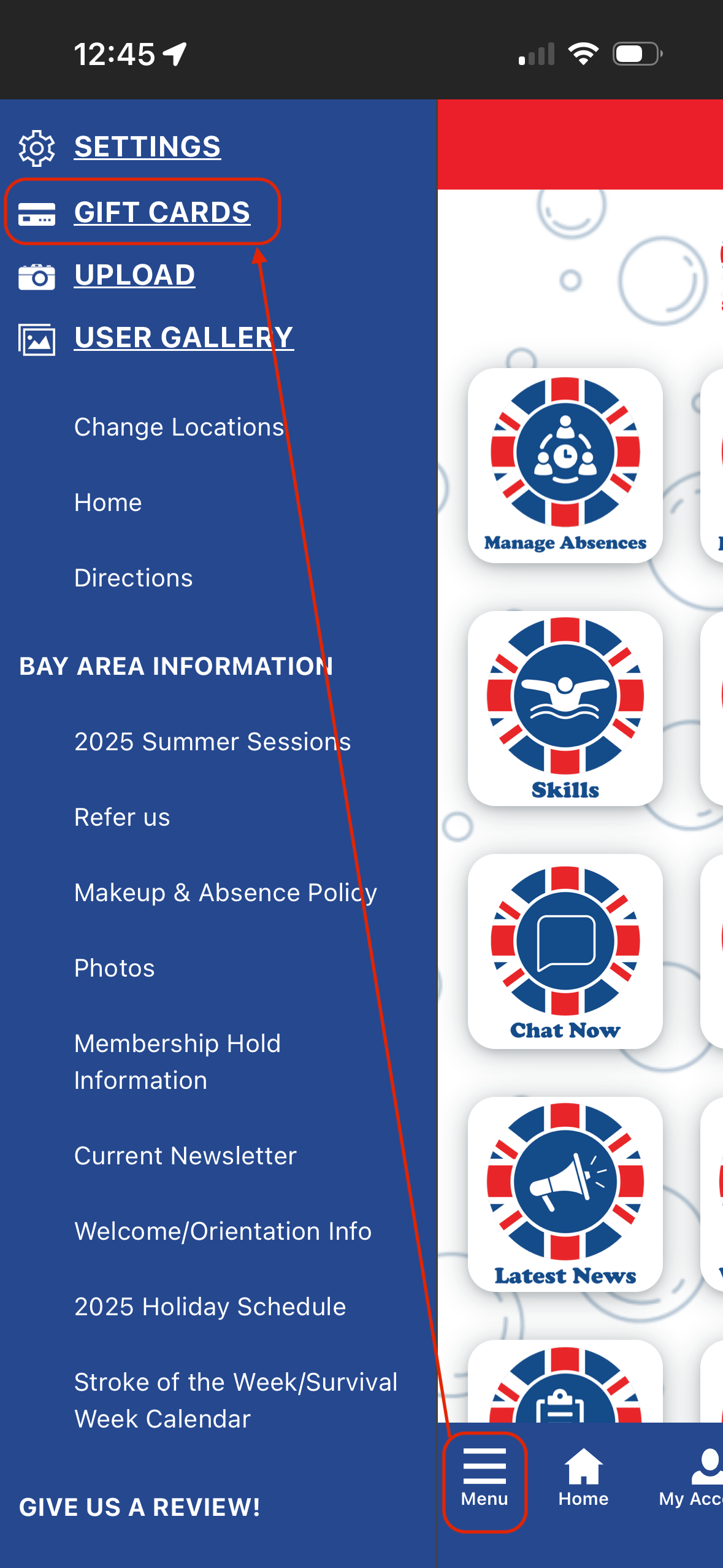 When you click on "Give," it will pop open your phone's sending screen and you can choose to deliver the gift card via email or phone.