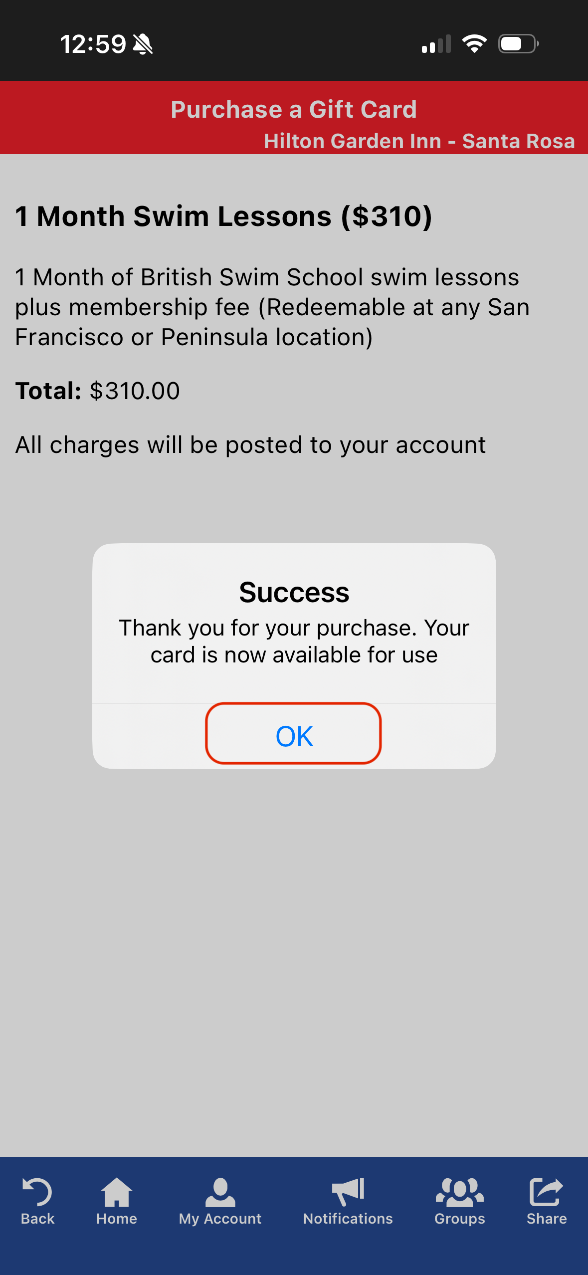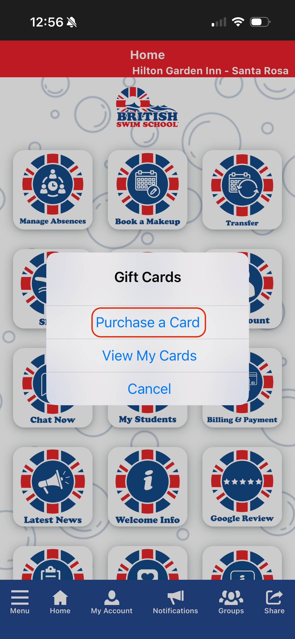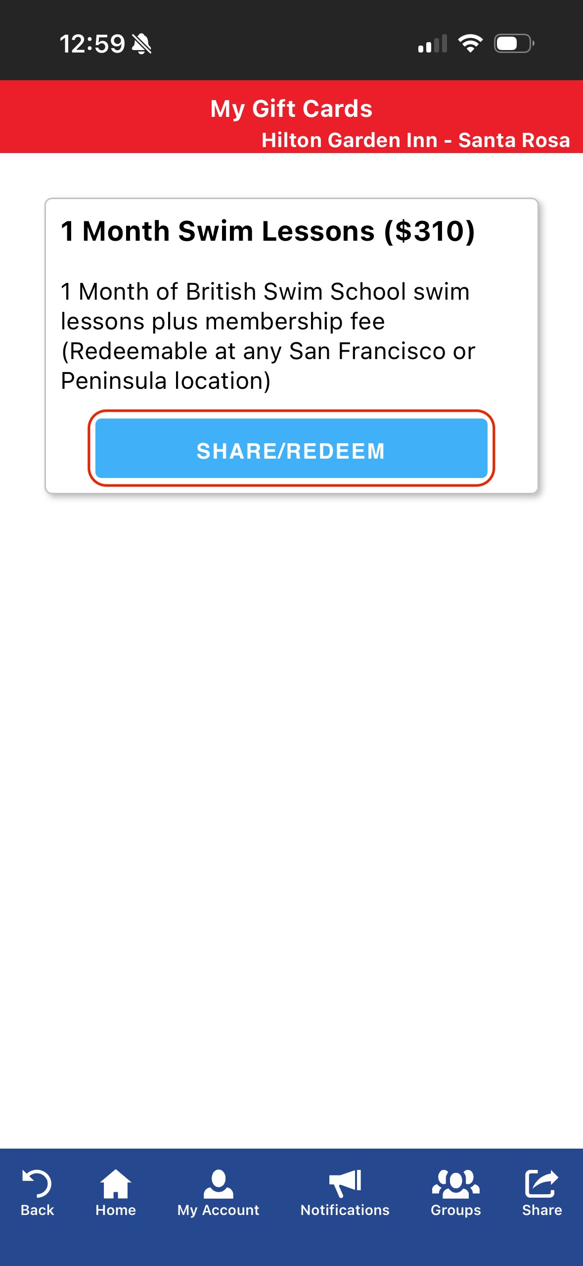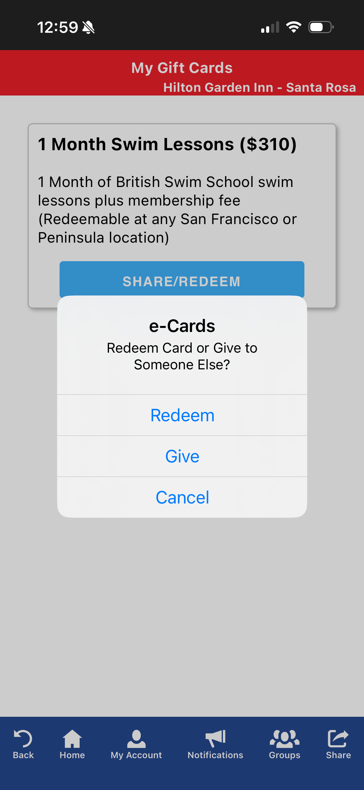 Once the gift card is in your account you can choose to share or redeem the card: